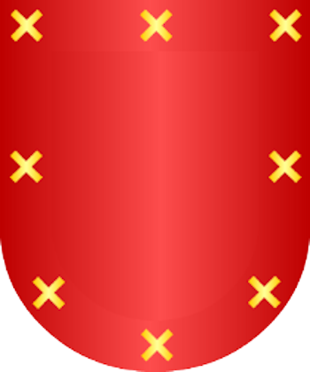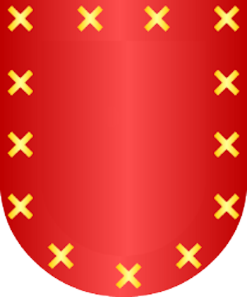 de gules, trece sotueres de oro.
