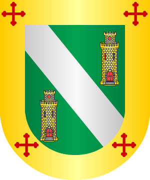 Bordura de gules, con ocho sotueres de oro.