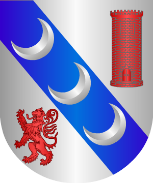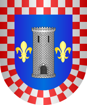 campo de azur, una torre de plata, acompañada