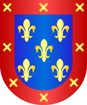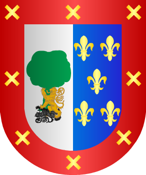 de dos flores de lis de oro, una a cada lado.