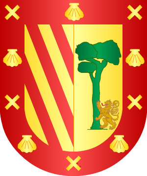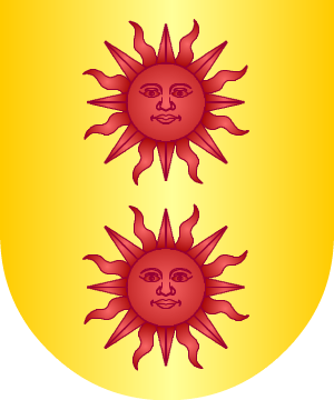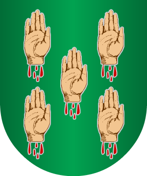 puestas 1, 3 y 1. Bordura de gules, con diez