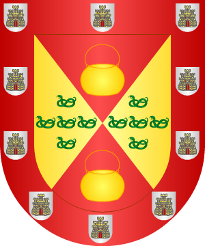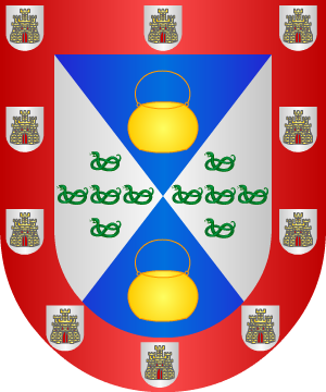 sierpes de sinople puesta 1, 3 y 1. Bordura de