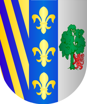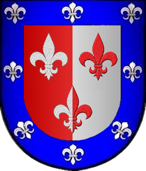 Cuartelado en sotuer: 1º y 4º de azur con una
