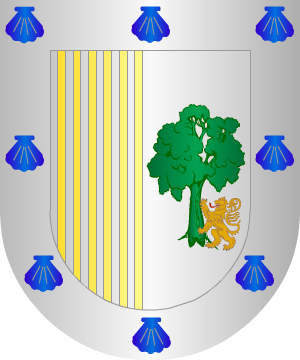 Escudo cuartelado en sotuer: 1º y 4º, en campo